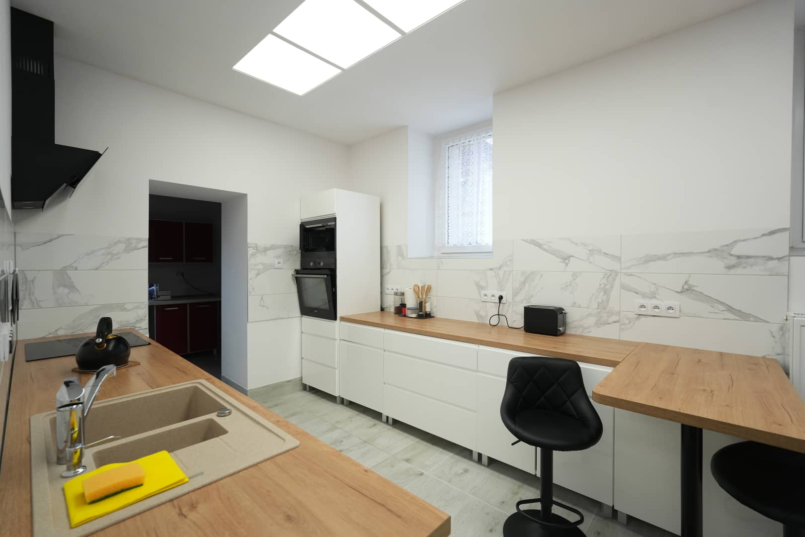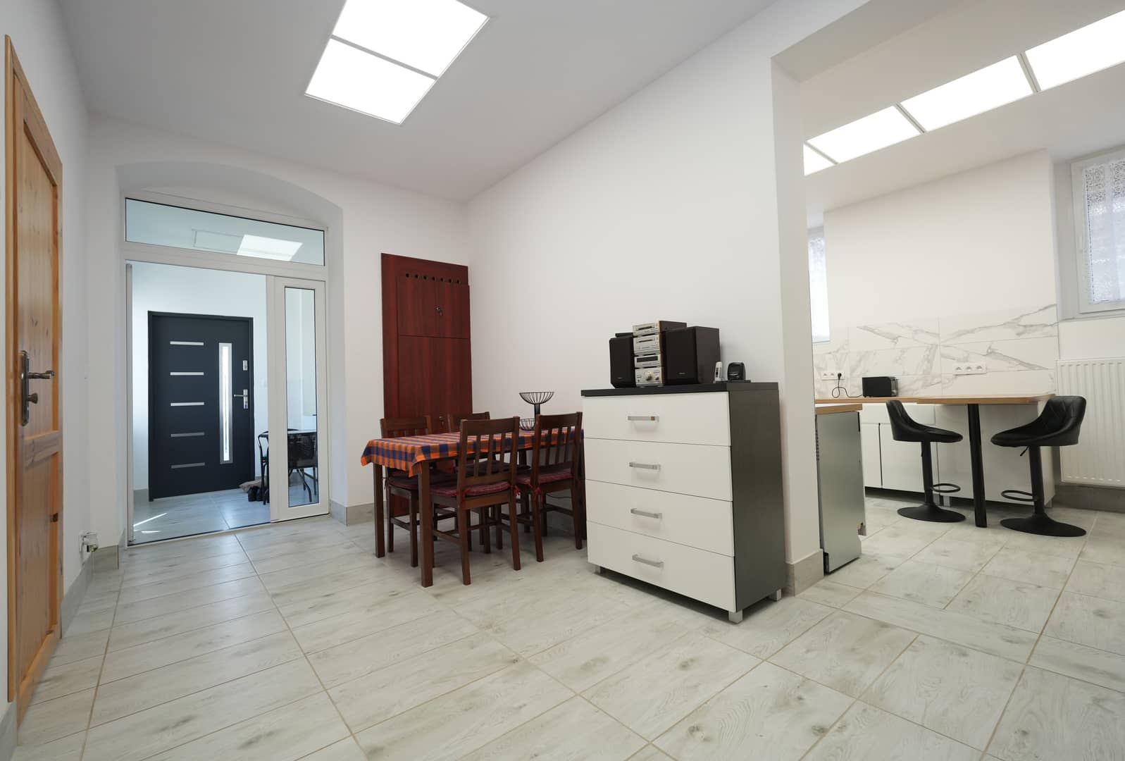 Dodatkowym, bardzo istotnym atutem nieruchomości jest jej układ, który umożliwia podział na dwa niezależne mieszkania. Dzięki temu oferta doskonale sprawdzi się zarówno dla dwóch rodzin, jak i w celach inwestycyjnych – np. pod wynajem krótkoterminowy lub długoterminowy.