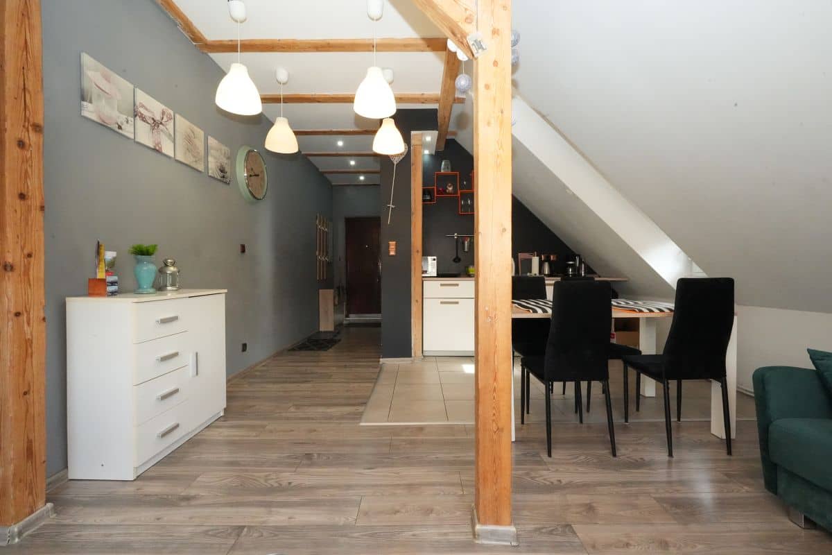 Nieruchomość z powodzeniem funkcjonowała jako inwestycja pod wynajem krótkoterminowy. Mieszkanie na pierwszym piętrze może pomieścić nawet do 9 osób i generuje przychód na poziomie około 500 zł za dobę. Apartament na drugim piętrze przeznaczony jest dla 4 osób, a średnia stawka najmu wynosi około 300 zł za dobę.