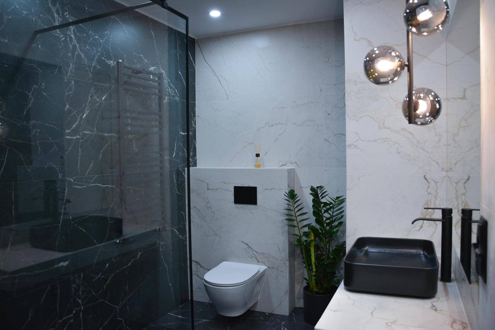 estetyczna łazienka z kabiną prysznicową,