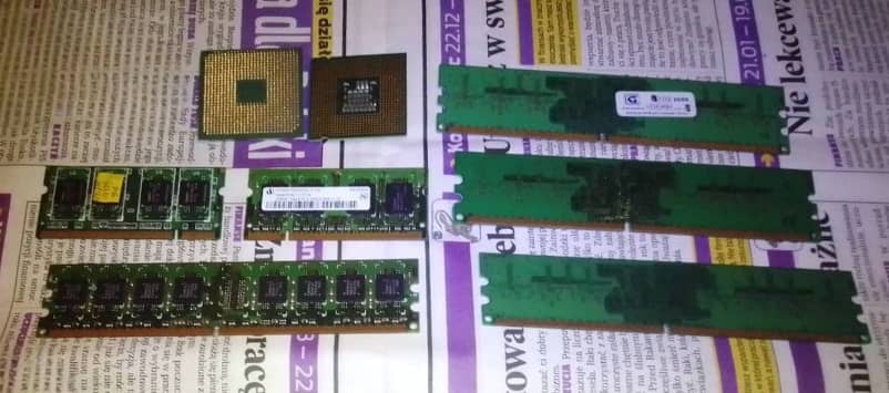 Sprzedam podzespoły komputerowe w składzie: pamięć ddr2 do komputera stacjonarnego Kingston KVR667D2N5K2/1G 1GB, KVR667D2N5/512 512 MB, Goodram GR667D264L5/1G 1GB, Infineon HYS64T128020HU-3.7-A 1GB PC4200, pamięc ddr2 do laptopa Twinmos pc2-4200 8D22JJ-HX 512 mb 533 MHz i Infineon HYS64T32000HDL-3.7-A 1Rx16 PC2-4200S-444-11- C0 256 mb 533 Mhz, procesor Amd Sempron SDA2800AIO3BX 2800+ s.754, procesor Intel Pentium Dual Core SLA3J Malay 1.60 GHz s.775. Całość 20 zł.