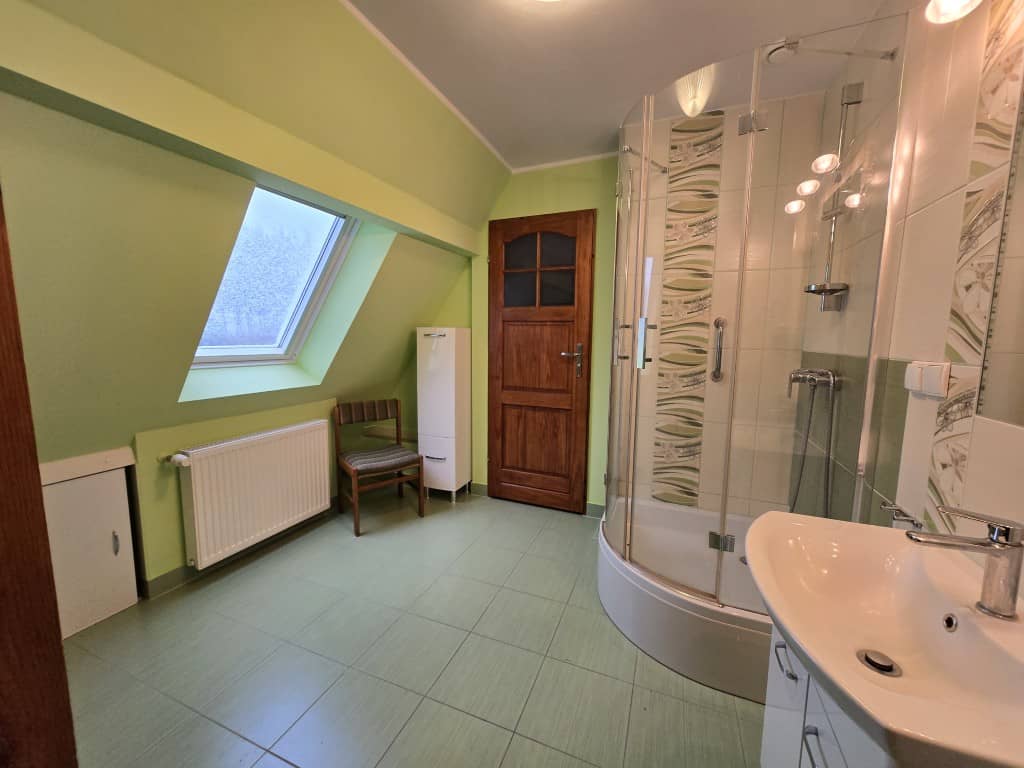 Lokal o powierzchni użytkowej wynosi 81,97 mkw składa się z 3 pokoi, kuchni, łazienki połączonej z wc oraz z bezpośrednim wejściem do pomieszczenia gospodarczego/suszarni i korytarza. Z pokoju dziennego i z kuchni mamy wyjście na balkon od południowej strony. Mieszkanie rozkładowe z niezależnym wejściem do poszczególnych pomieszczeń. W kuchni pozostał poniemiceki piec kaflowy z funkcją grzania i gotowania a w jednym z pokoi znajduje się kominek z rozprowadzeniem na pozostała pomieszczenia.