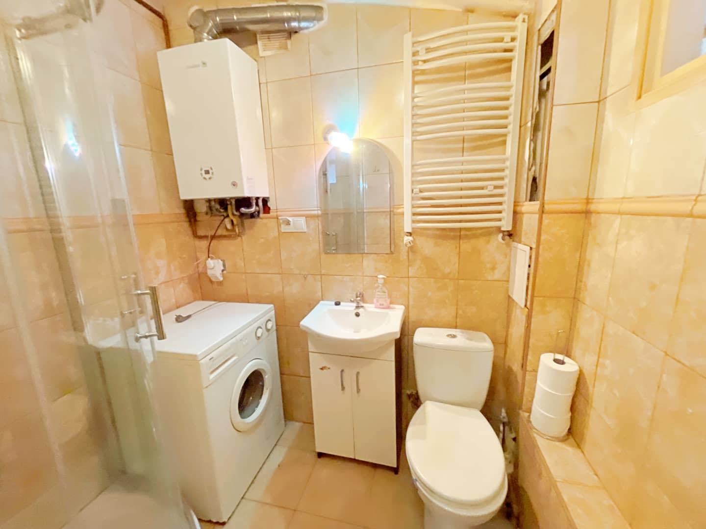 - łazienka z kabiną prysznicową i toaletą