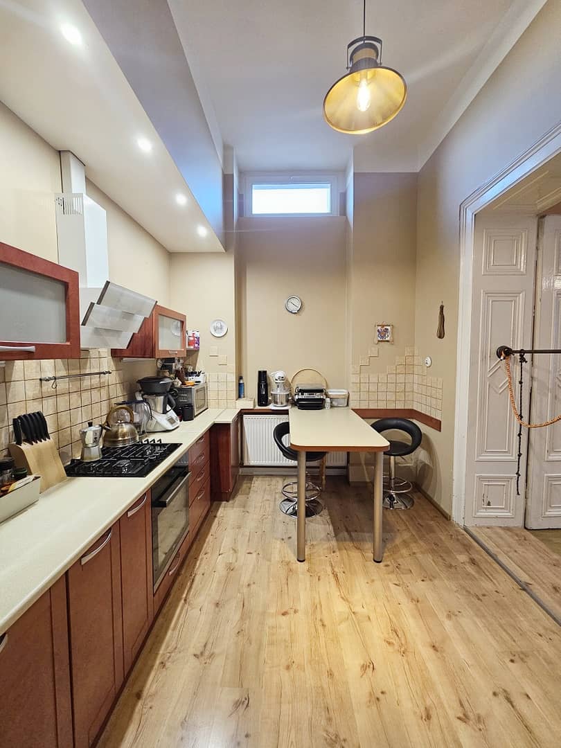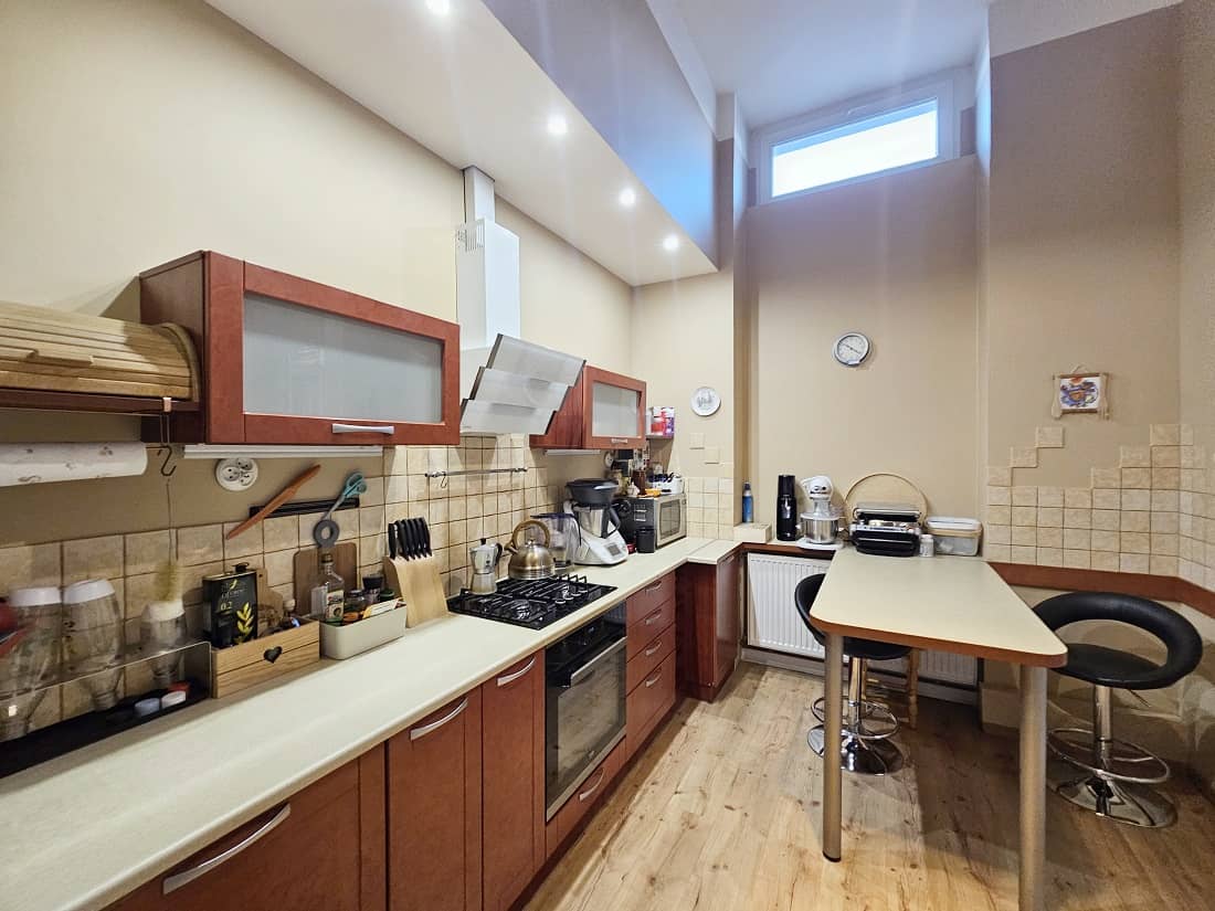 Dodatkowo do mieszkania przynależą piwnice o pow. 50,93 m2. Ogrzewanie gazowe własnym piecem 2 – funkcyjnym. Okna drewniane i pcv, na podłogach panele i płytki. Instalacje nowe wymienione. Wysokość pomieszczeń 4 m. Mieszkanie wymaga jedynie odświeżenia i urządzenia wg własnego gustu. Czynsz do wspólnoty 620 zł z FR. Całe wyposażenie w cenie nieruchomości.
