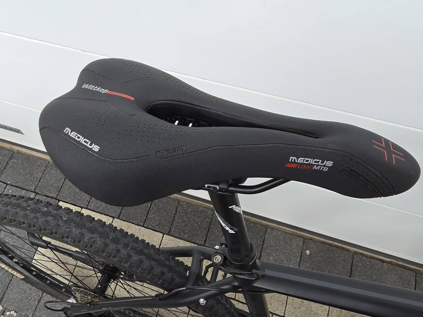 - rama aluminiowa , wytrzymała , rozmiar 21,5 cali ( 54 cm od suportu (pedał) do mocowania pod siodełkiem )