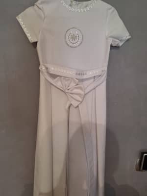 Polecam- rzeczy w bdb stanie /sukienka r.134 plus dodatki oprócz butów i rękawiczek /alba krotka r.128 -134/ceny do omówienia /zainteresowanym wyślę zdjęcia -pisać sms