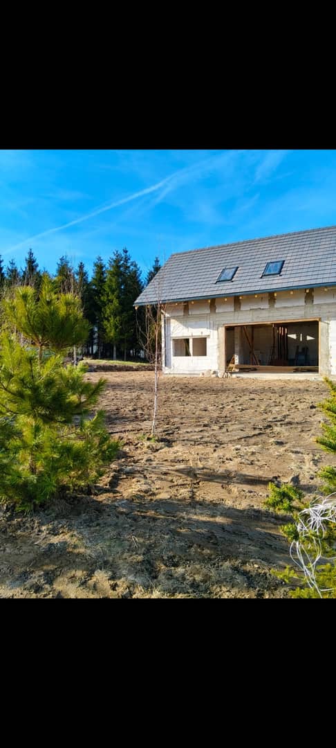 Połowa domu w podziale pionowym, położona na Pogórzu Kaczawskim w gminie Lwówek Sląski. Usytuowany na działce o powierzchni 2400 m2 do użytku z sąsiadem (każdy umownie korzysta z zagospodaro