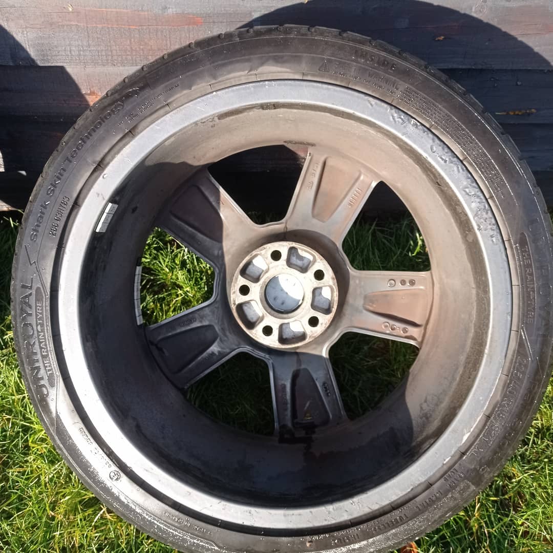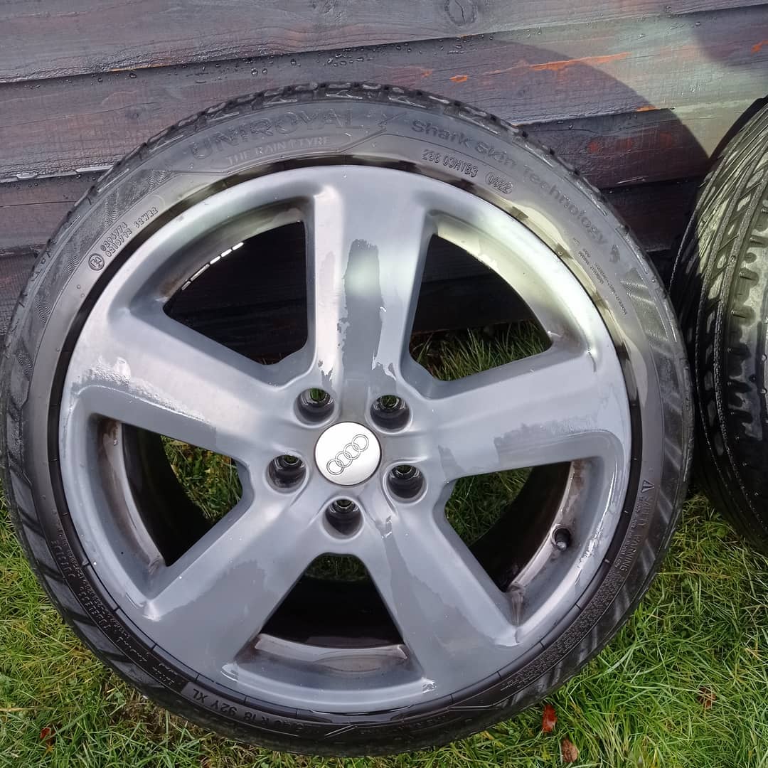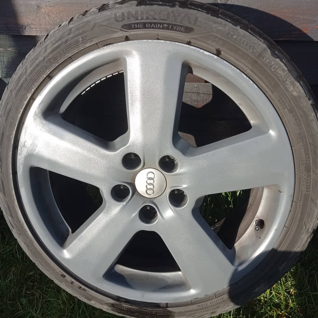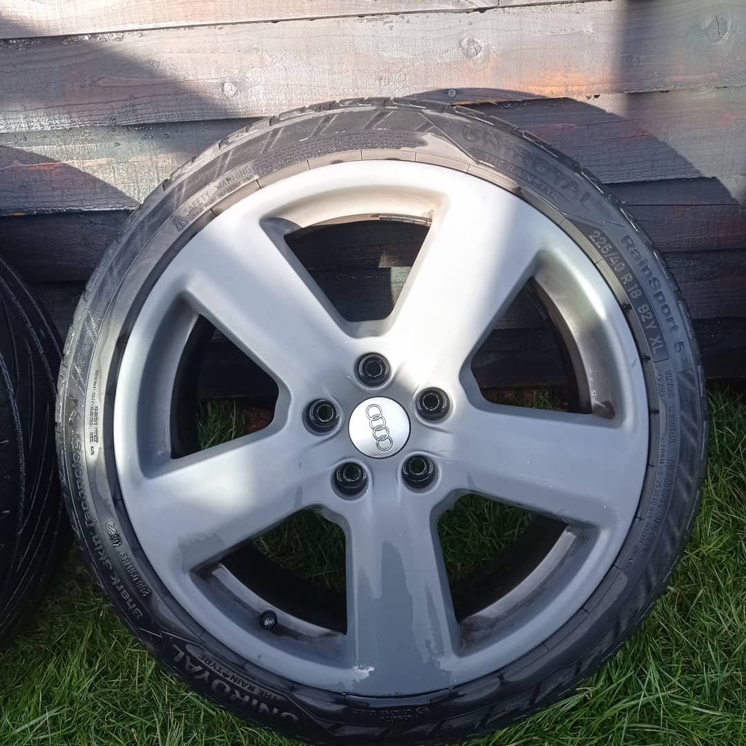 Pierwszy komplet to alu z Audi rs3, 18 cali ET 54 opony letnie Uniroyal rainsport 5na jeszcze jeden sezon cena 950zł. Drugi komplet to 16 alu też z Audi, ET 42 opony letnie raczej do zmiany. Cena 450. Oba komplety pasują do wielu aut grupy VAG. Rozstaw śrub 5 x112.