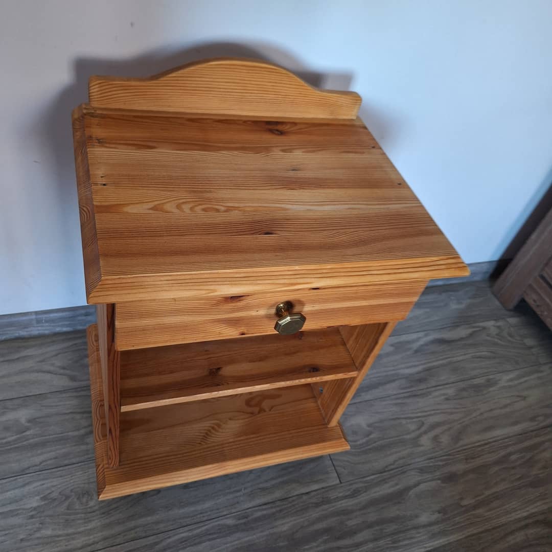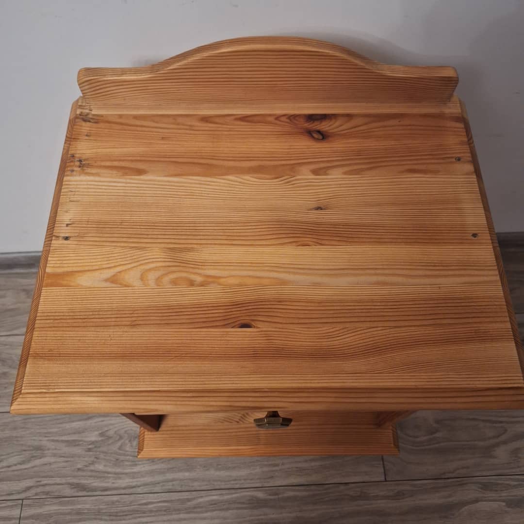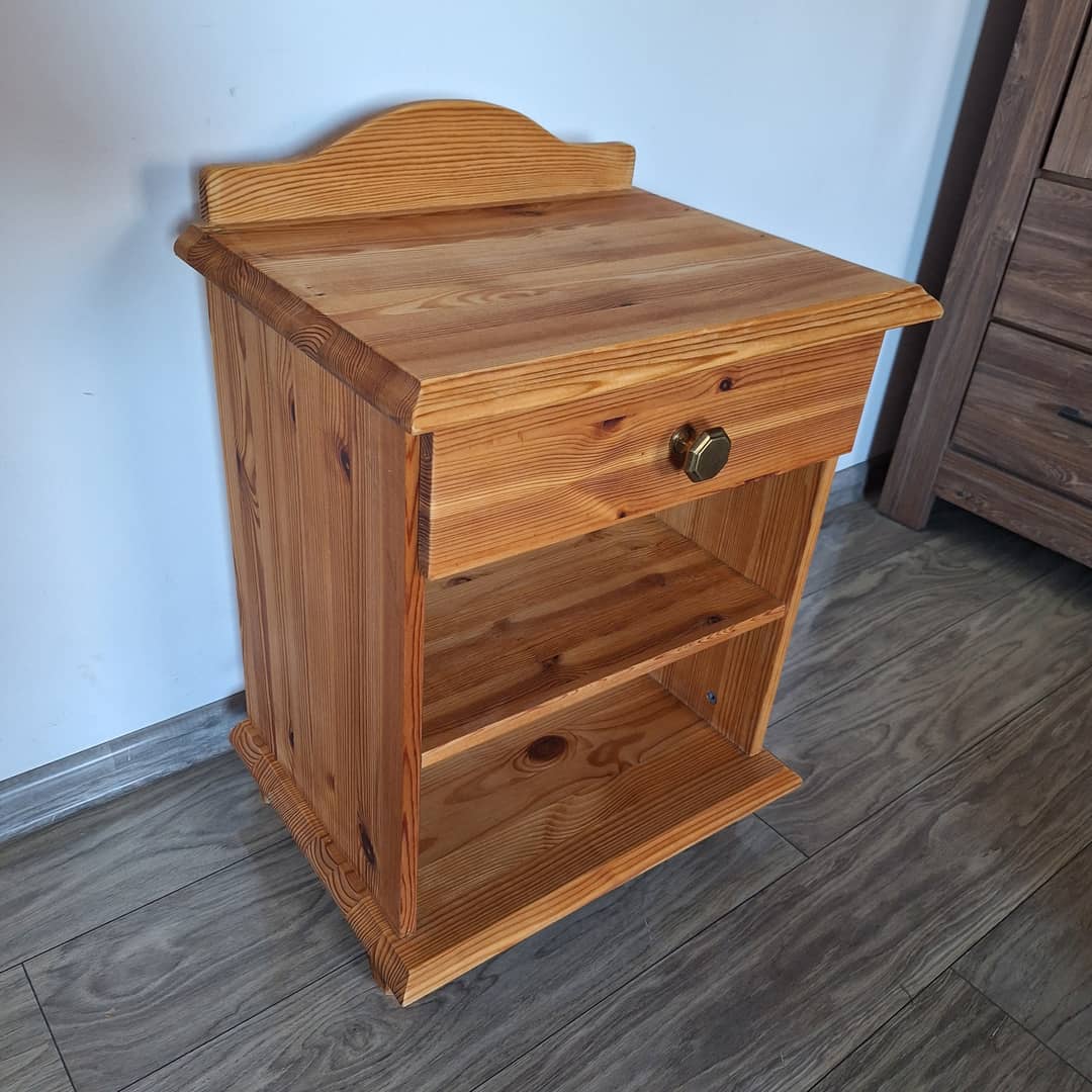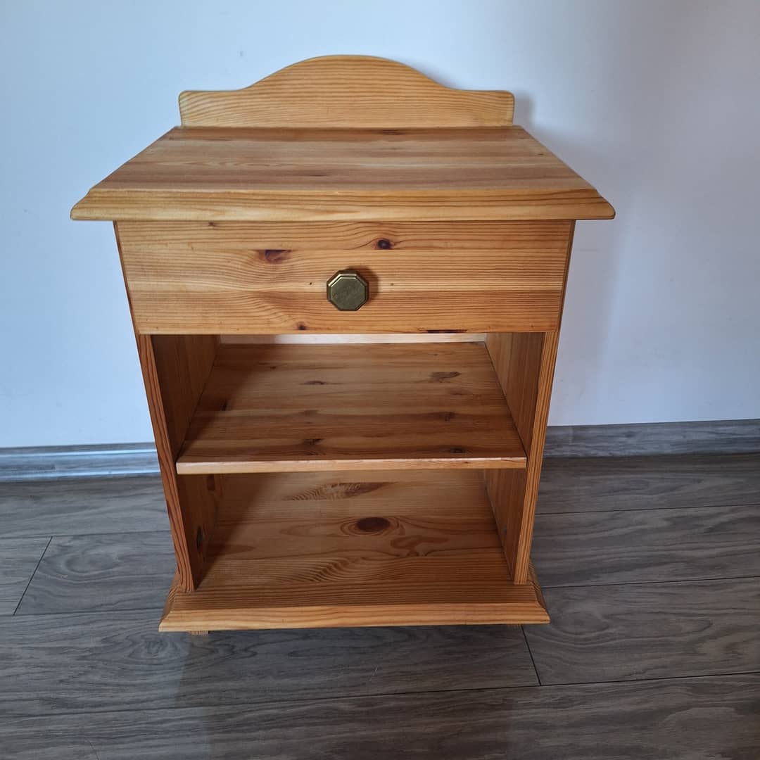 Szafka nocna z litego drewna z szufladą. Wymiary długość 48 cm, szerokość 37 cm, wysokość 60 cm. Możliwy transport. Cena 140 zł.