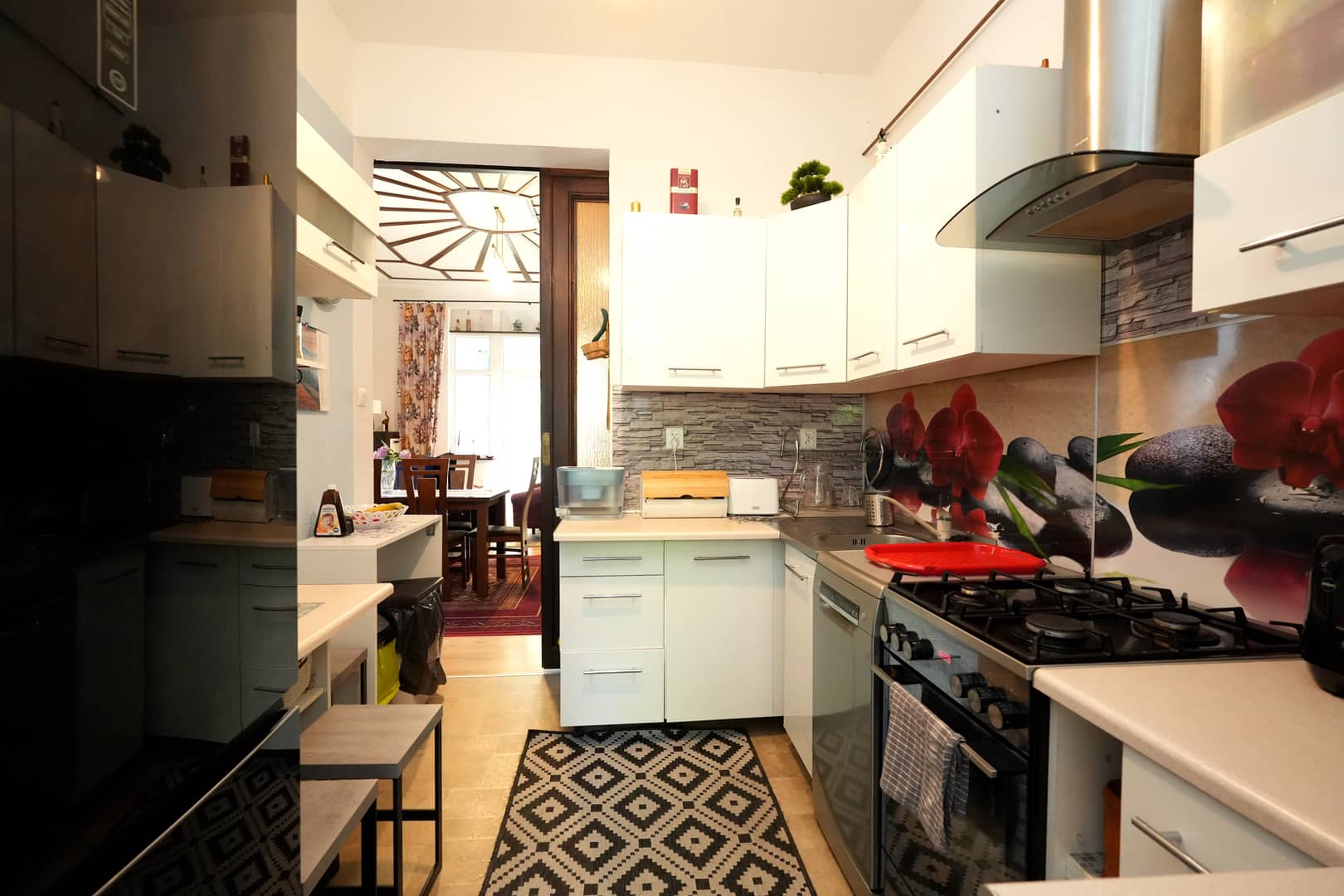 Sprzedaż mieszkania o powierzchni całkowitej 74,2 m² i użytkowej 49,2 m2. Usytuowane na 1 piętrze, z przynależnymi dwoma piwnicami oraz ogródkiem. Układ: 2 pokoje, po prawej stronie kor