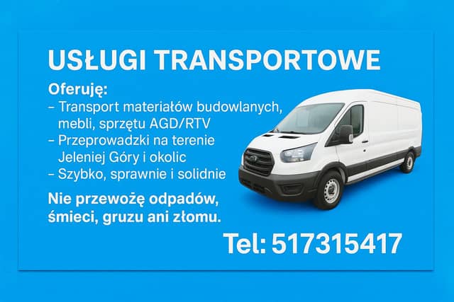 - Transport materiałów budowlanych, mebli, sprzętu AGD/RTV